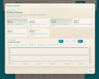 Coins Company is a desktop tycoon game about building and growing a crypto-mining company.